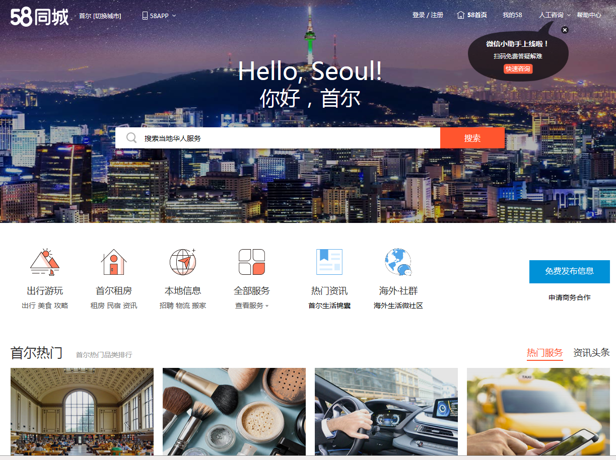 중국사이트 ( 우빠통청 58통청 58同城 )