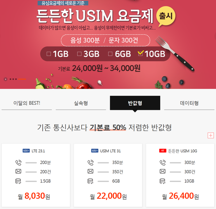 아래에서 ""든든한 USIM 요금제"" 폰트와 폰트 진한 테두리가 또렸해보이고