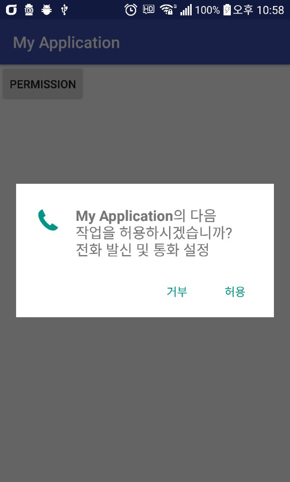 Log.v("DEBUG", "텔레폰 퍼미션이 허용됨");