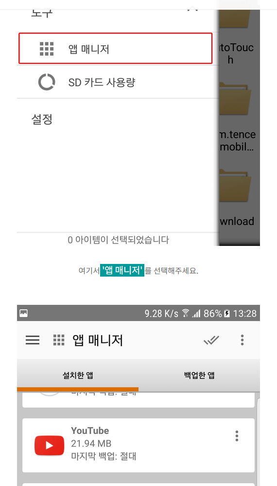 ASTO파일 관리자 혹은 ES파일탐색기도 잘 된다.